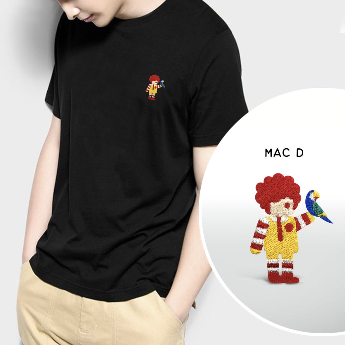 • Front panel pocket area with Mac D embroidery